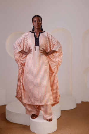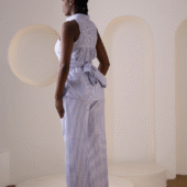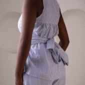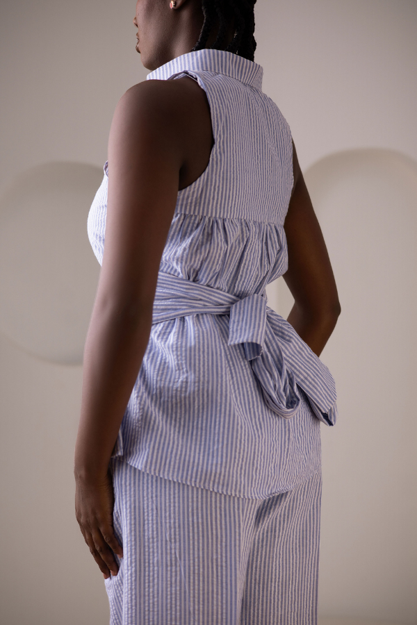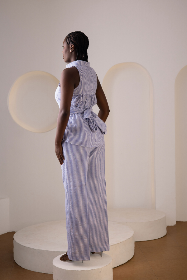 The matching trousers are cut for comfort and movement, making the Mimi Set perfect for warm days, casual work looks, or relaxed weekends. Its crisp stripes and flattering silhouette create a polished yet laid-back vibe that works effortlessly from day to night.