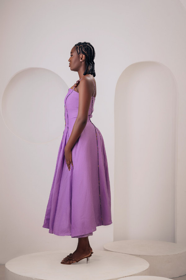 Each seam is finished with African print piping, adding a touch of color and culture in a subtle, modern way. The beaded straps bring a playful twist, making the Skye Dress easy to dress up or down.
